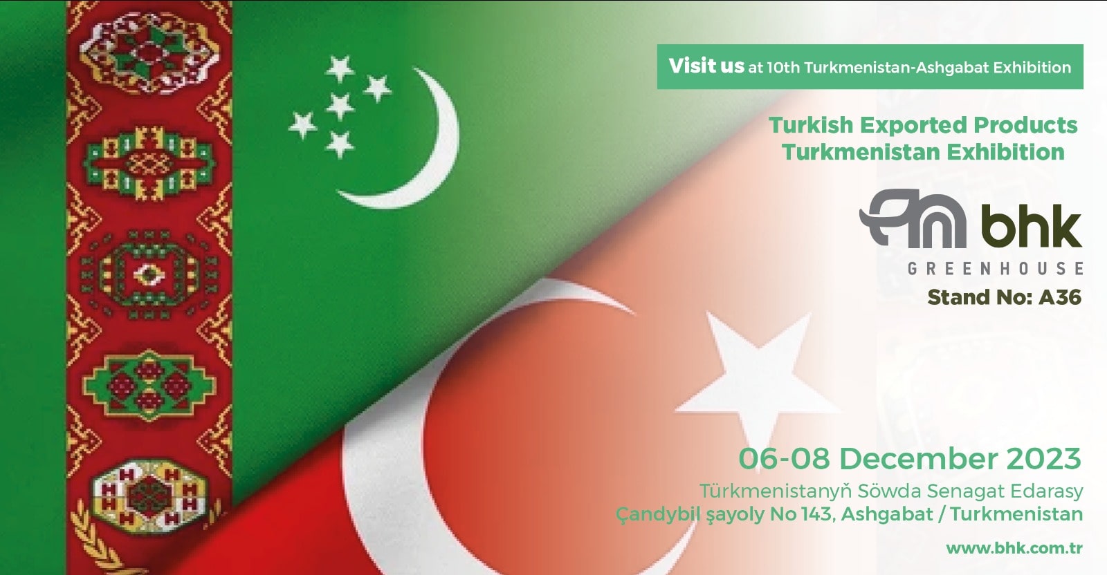 BHK Greenhouse is pleased to welcome you, our valued visitors, at Stand No. A36 at the fair to be held in Turkmenistan – Ashgabat. Our team is waiting for you at our stand between 06 – 08 December 2023 to provide information about greenhouse materials, agricultural technologies and advanced greenhouse applications.