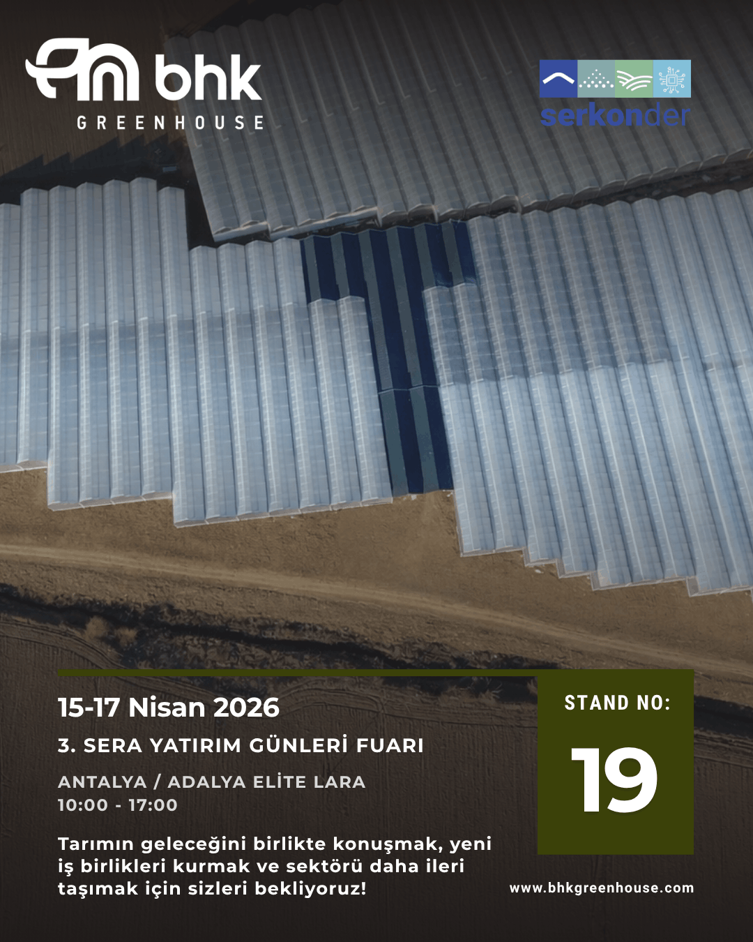 15-17 Nisan 2026 tarihleri arasında düzenlenecek 3. Sera Yatırım Günleri Fuarı kapsamında, BHK Greenhouse olarak 19 numaralı standımızda siz kıymetli ziyaretçilerimizi ağırlamaktan memnuniyet duyacağız.
